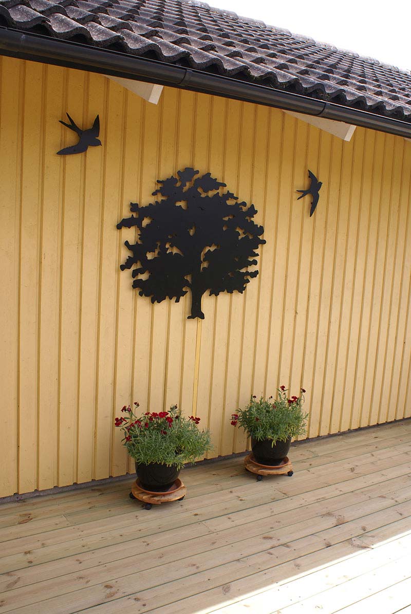 Koristeet voidaan asentaa sisä- tai ulkotiloihin ja ne on käsitelty ulkokäyttöön sopiviksi. Jos se asennetaan esimerkiksi länsirannikolle tai muihin suolapitoisiin ympäristöihin, suosittelemme valitsemaan pidennetyn takuun. Silloin valmistamme koristeen ruostumattomasta teräksestä.