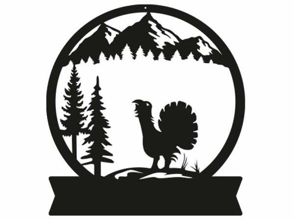 Tyylikäs henkilökohtainen takorautainen taulu luontomotiivilla, jossa on vuoria, puita ja metso.