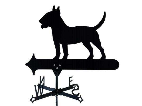 Tuuliviiri, joka esittää iloista ja leikkisää bullterrieria.