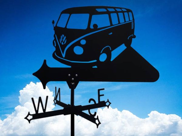 Muokattava tuuliviiri, joka esittää yksityiskohtaista vanhaa klassista VW-bussia.